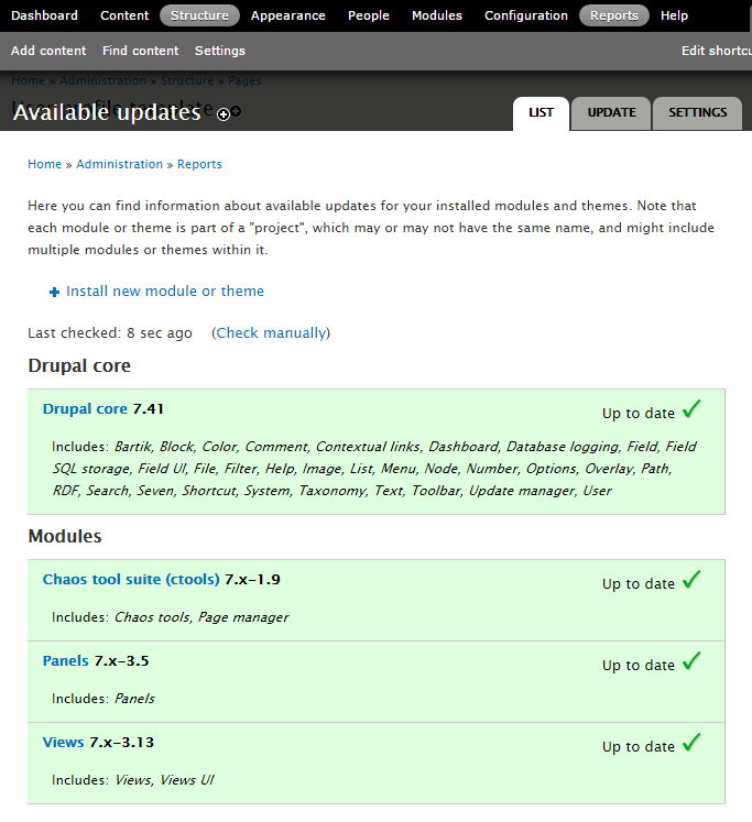 To check and run updates, all you have to do is to navigate to “Reports” ->” Available Updates.”